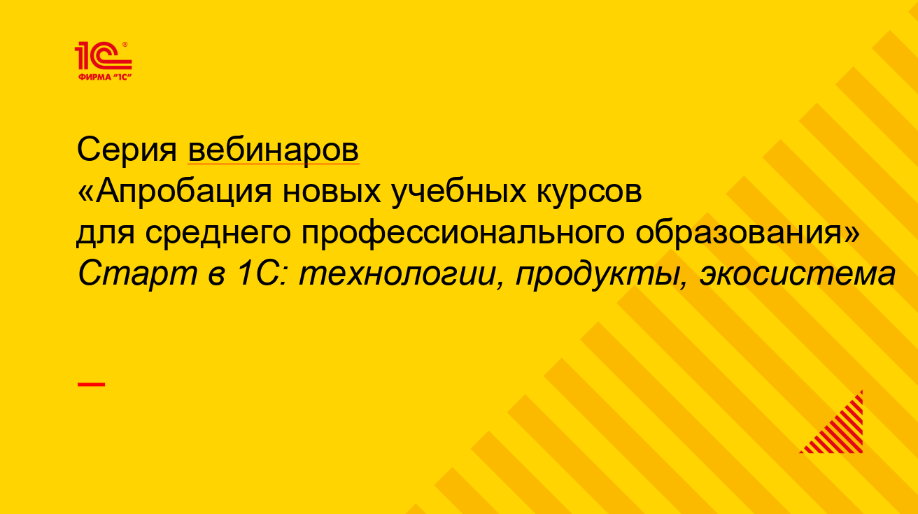 На вебинаре мы рассказали про новый учебный курс для организаций среднего профессионального образования (колледжей, техникумов, училищ) — «Старт в 1С: технологии, продукты, экосистема», а также о проектах, конкурсах и других активностях нашей компании для студентов и преподавателей колледжей .